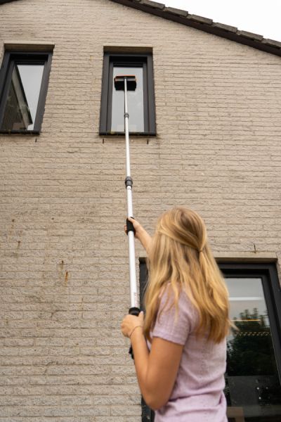 - Dakkapellen en zonnepanelen: Onze telescoopsteel is perfect voor het schoonmaken op moeilijk bereikbare plekken, zoals dakkapellen en zonnepanelen.