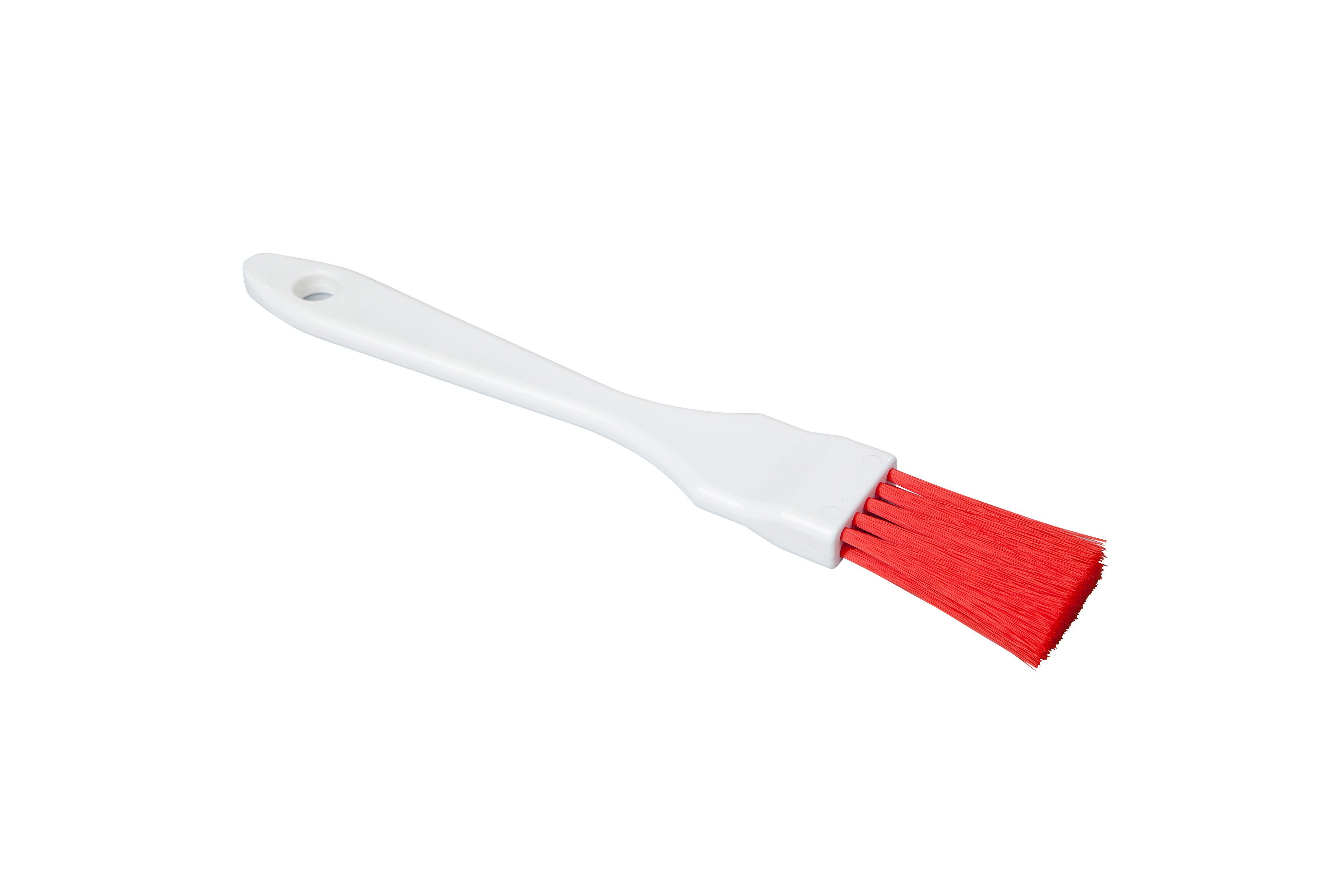 Deze rode kunststof bakkwast (30 mm) met synthetische haren wordt gebruikt in de levensmiddelen industrie.