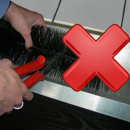 Let op: de draad niet doorknippen, maar de borstel ombuigen!