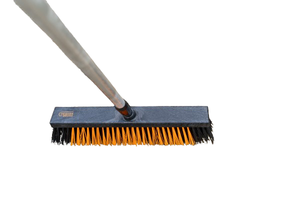 De OrangeBrush Straatbezem met steel heeft een breedte van 45 cm en is grotendeels vervaardigd uit gerecyclede materialen, en is dus een duurzame keuze. De straatbezem is ook los te verkijgen.