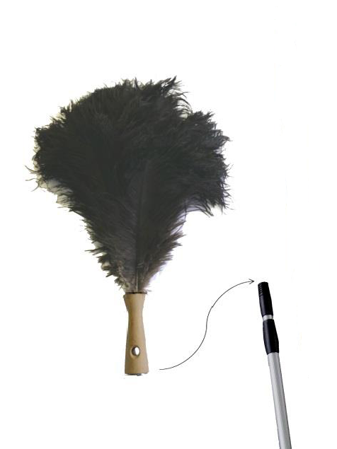 De microvezels van de struisvogelverenplumeau verwijderen minuscule stofdeeltjes en verzekeren een veel betere werking dan synthetische tegenhangers.