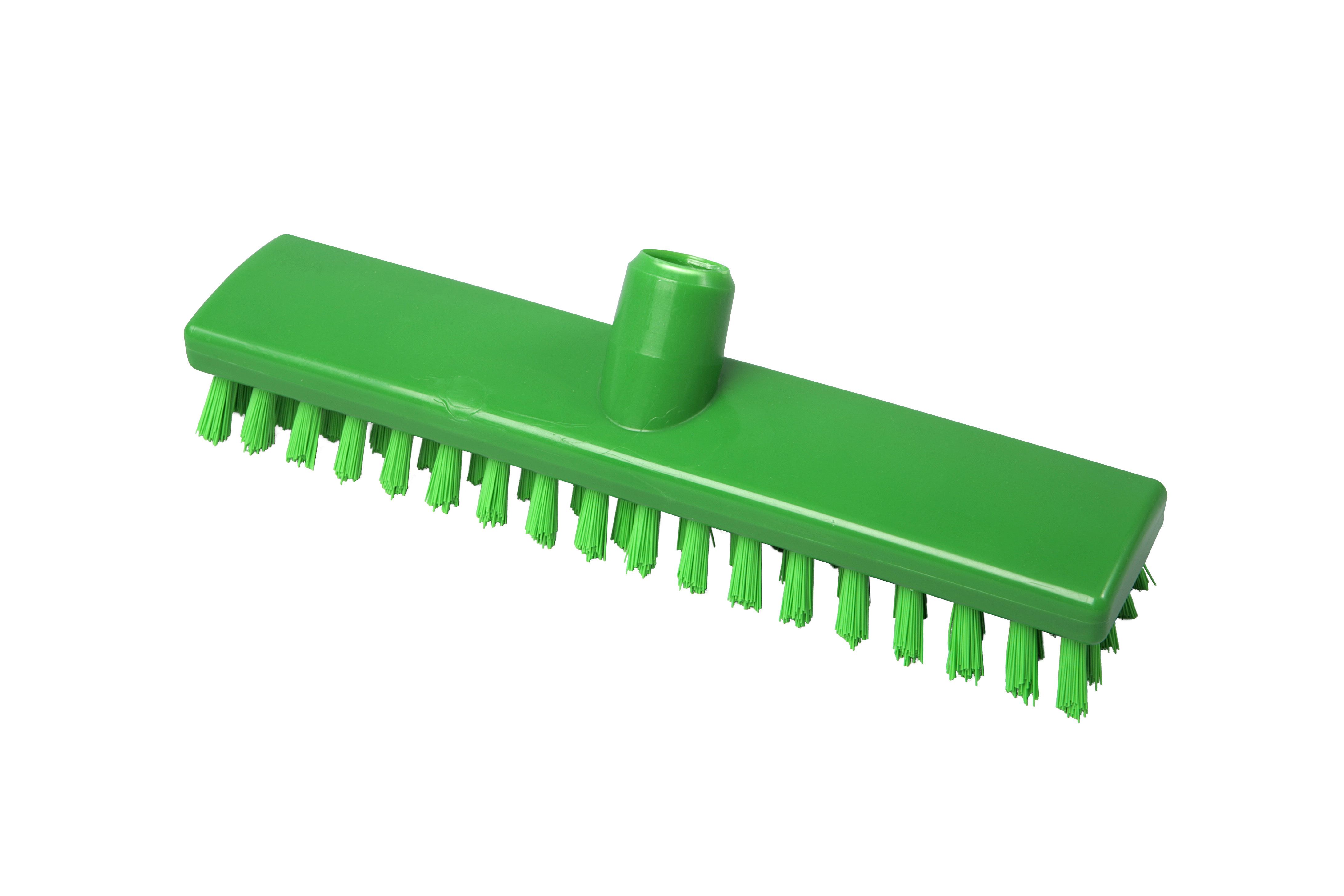 Harde groene schrobber met korte haren voor het schrobben van vloeren en wanden, tegels en hardnekkige vervuiling.