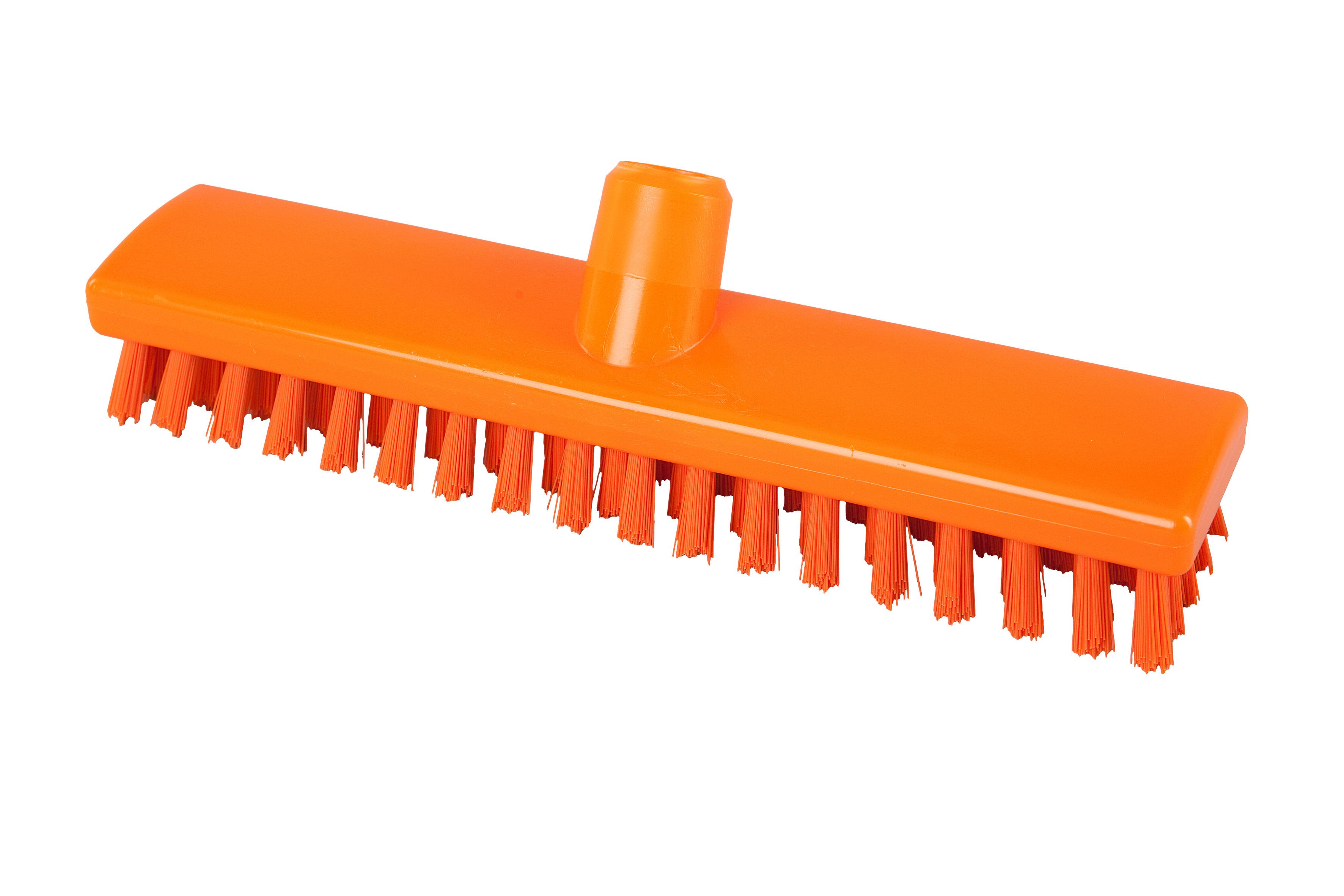 Harde oranje schrobber met korte haren voor het schrobben van vloeren en wanden, tegels en hardnekkige vervuiling.